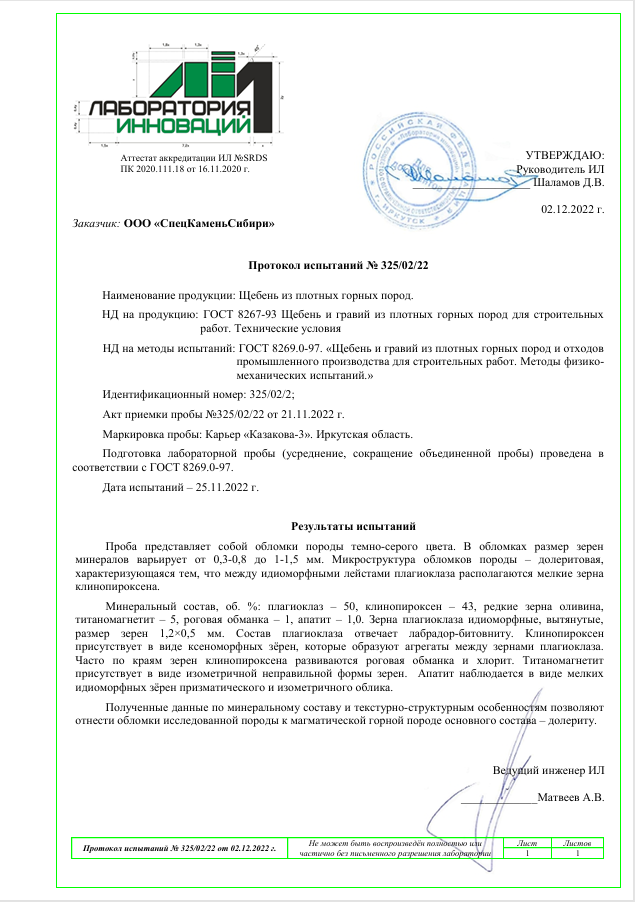 Протокол испытаний